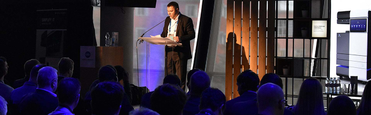 Székely Dániel, a Konica Minolta Magyarország ügyvezető igazgatója közel 500 vendég előtt nyitotta meg az eseményt. Köszöntőjében így fogalmazott: „Mérföldkőhöz érkezett a cég. Minket a piac jellemzően nyomtatás szolgáltatóként ismer, holott cégünk ennél jóval szélesebb portfólióval rendelkezik és több ajánlattal van a piacon – csak erről kevesebben tudnak. Szeretnénk a Konica Minoltát úgy pozícionálni, hogy nyilvánvalóvá váljon, a nyomtatáson túl milyen egyéb értékajánlatot és értéket tudunk teremteni ügyfeleinknek. Mindennek ékes példája a Digital Workplace Konferencián debütáló Workplace Hub nevű újdonságunk, mely kiemelkedő biztonság mellett a kkv-k IT-infrastruktúrával kapcsolatos feladatait, problémáit oldja meg egyetlen termékkel. Leegyszerűsíthető az infrastruktúrával kapcsolatos adminisztráció, ezáltal az érintett munkavállalók arra fókuszálhatnak, ami igazán számít.”