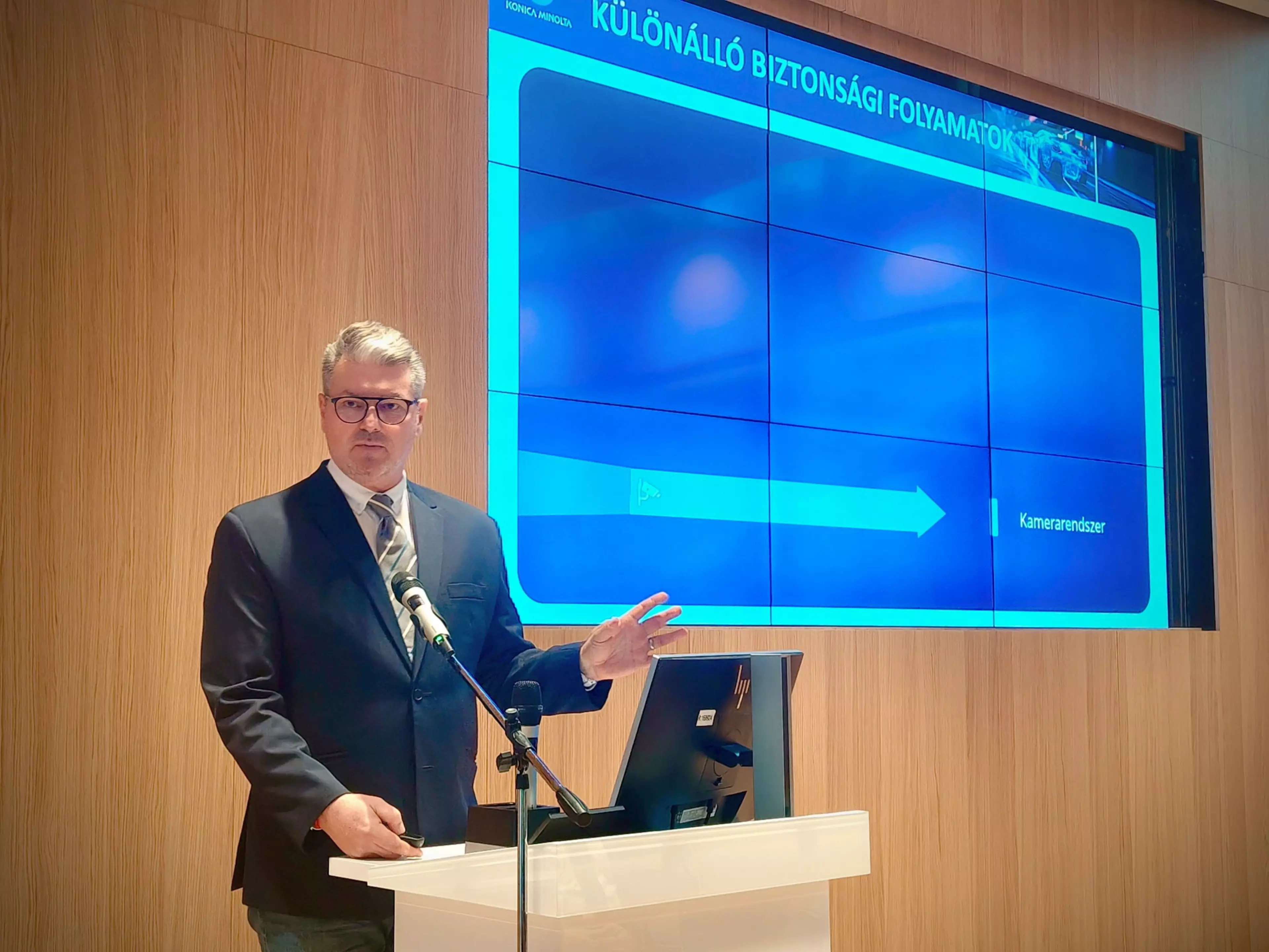 A konferencia szakmai előadójaként Czégé Attila, a Konica Minolta üzletfejlesztési tanácsadója “Automatizált védelem – azaz hogyan támogatható a biztonságos munkavégzés intelligens technológiákkal” című prezentációjában átfogó képet adott arról, hogyan támogatják az innovatív megoldások és az automatizáció a munkavédelmi megfelelést, a dokumentálást és a valós idejű kockázatcsökkentést. A fókuszban a dokumentált egyéni védőfelszerelés (PPE) ellenőrzés, az integrált videó menedzsment rendszerek (VMS) és a hőkamerás megoldások álltak.
